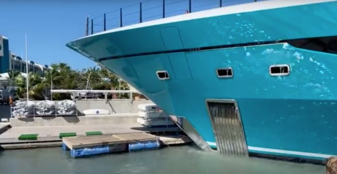 The superyacht, worth $118 million, was caught on video slowly crashing into the dock, in Simpson Bay, Saint Maarten last week.