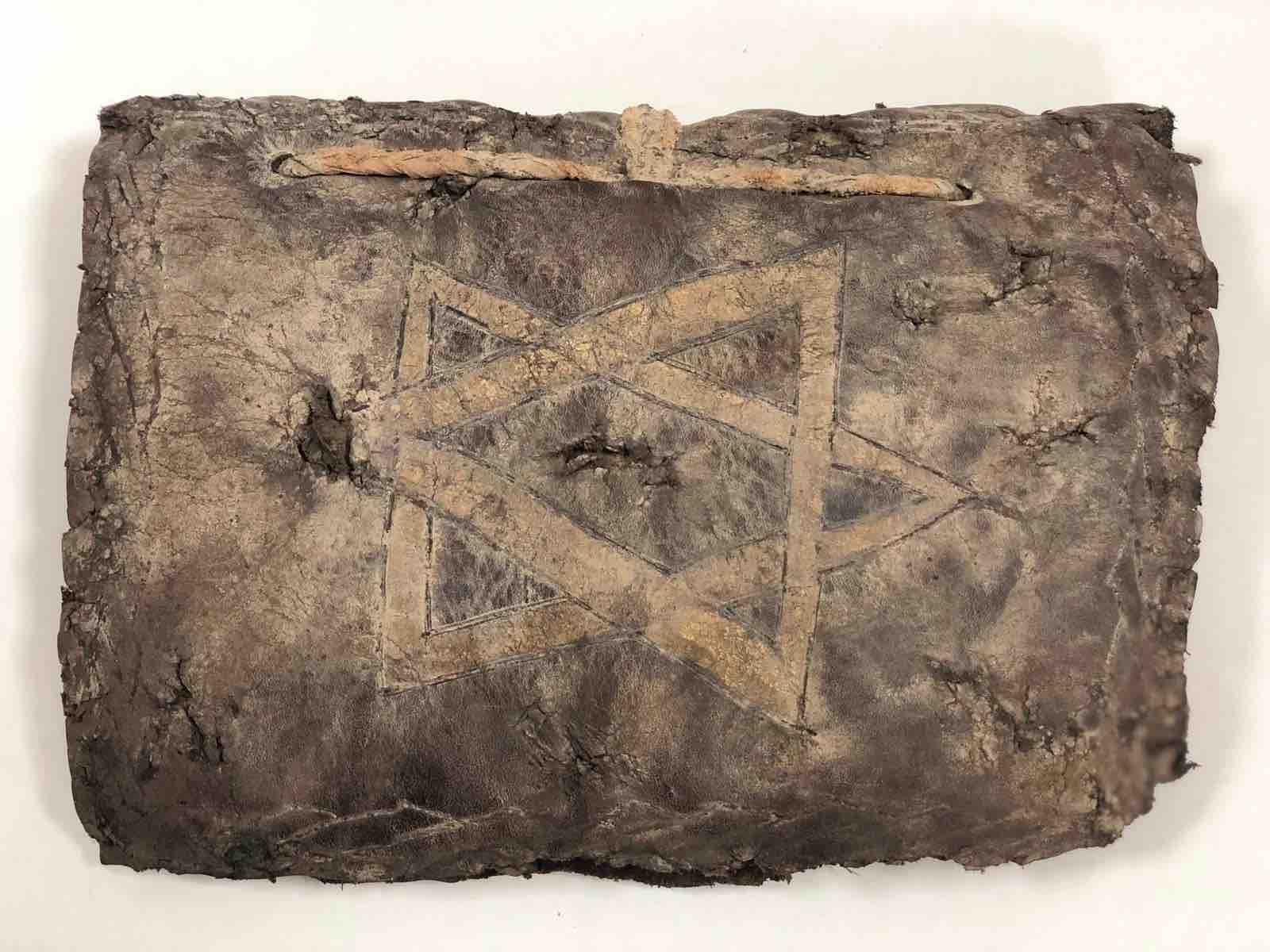 The Biblical text was written across 34 pages of leather with gold-encrusted religious motifs.