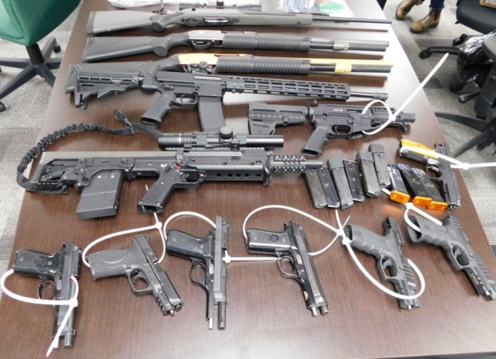 The RCMP says they located and seized seven restricted handguns, three semi-automatic firearms and three long-barrelled firearms. One handgun and two of the long-barrelled firearms were loaded. The RCMP said officers describe them as being unsafely scattered throughout the residences.