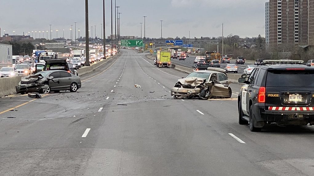 Ontario province police said the crash happened on the eastbound express lanes just past the 400 at 5 a.m. on Thursday.