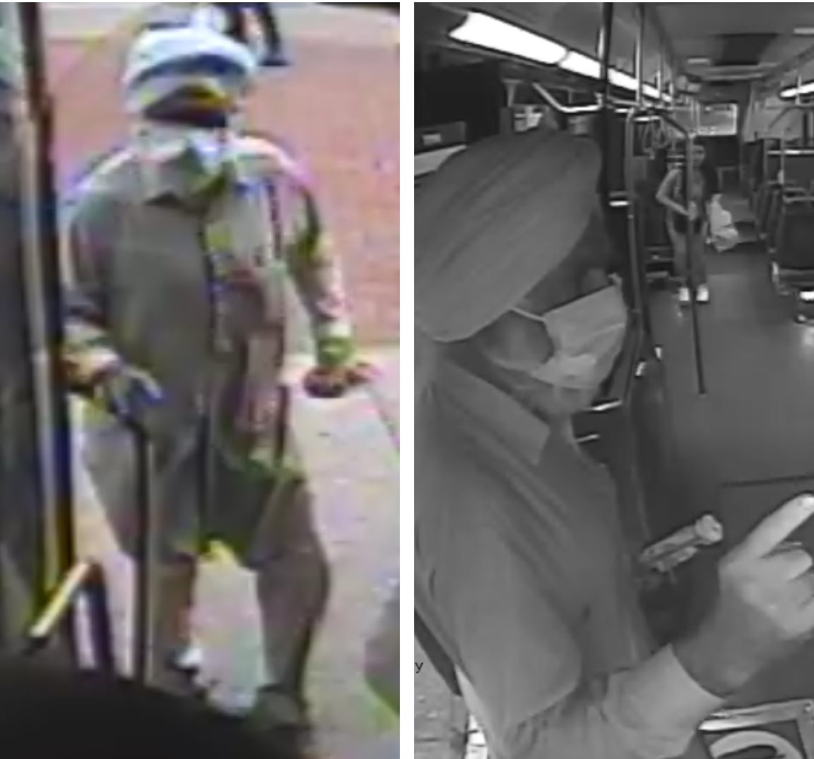 The suspect is described as a South Asian man between 60 and 70 years old with a white beard. He was wearing a blue surgical mask, light blue turban, dark shoes, and light-coloured, thin-cloth shirt and pants.