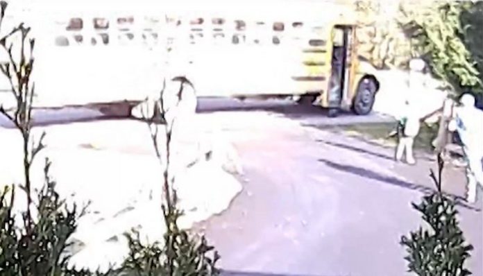 A police investigation found that a five-year-old child was getting off a school bus when the doors closed and trapped part of their body.