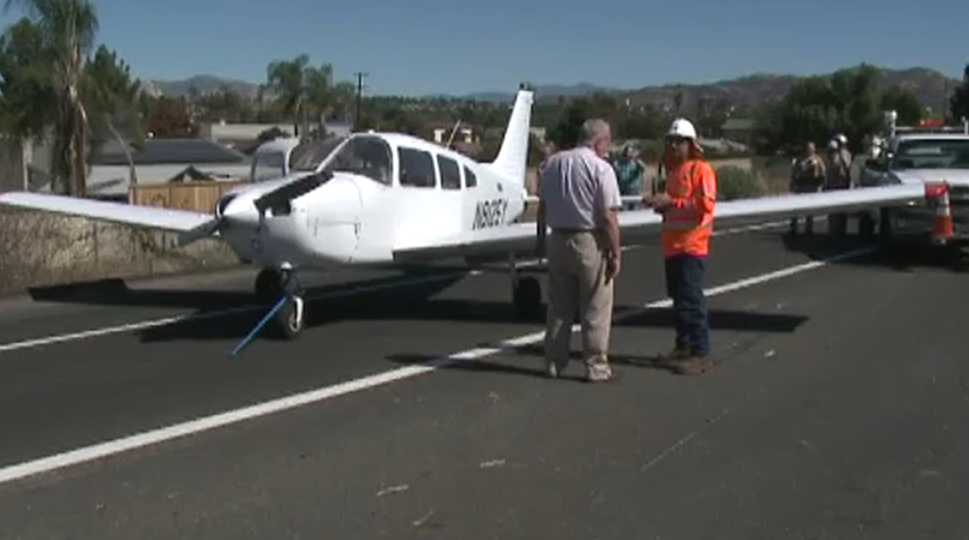 Video showed a flight instructor making an emergency landing on a highway in California Friday morning.