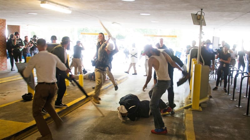 The rally was originally called to protest against the removal of statues of leaders of the Confederacy – the rebel states that seceded briefly from the United States in the 19th century when Abraham Lincoln took power on an anti-slavery platform.