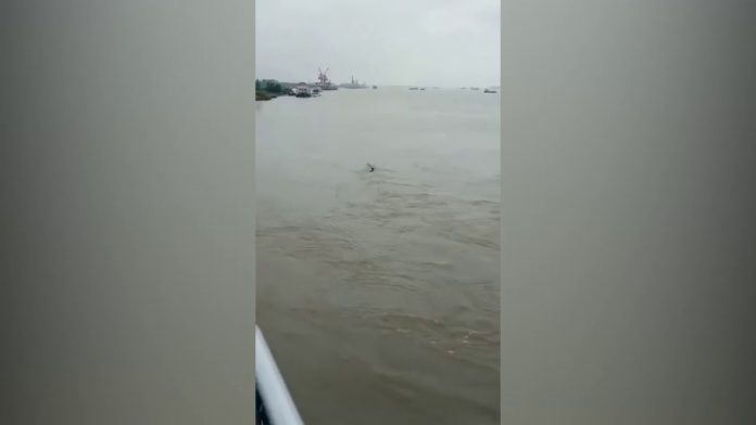 The snake-like creature evidently wasn’t shy; this footage was captured at the Three Gorges Dam Scenic Area, a popular tourist spot in Yichang City.