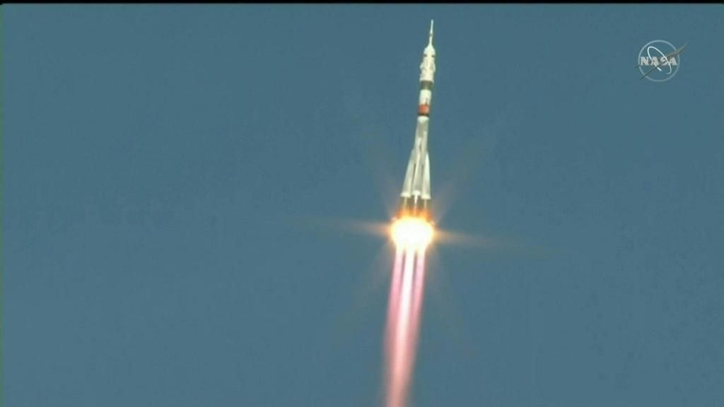 A cosmonaut aboard the International Space Station (ISS) captured stunning images of the record-setting Soyuz aircraft launch that brought three of his colleagues to the orbiting laboratory.