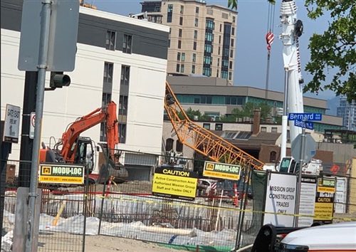 #Breaking RCMP evacuating area near Bernard Avenue and Bertram Street in downtown #Kelowna after a crane collapsed. No confirmation of injuries but police are calling it a “significant incident” with an industrial crane. @GlobalOkanagan (video: Jeff Martin) pic.twitter.com/7bLp9g0V7P