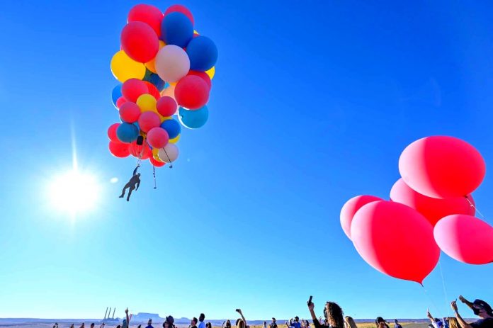 Now live on his YouTube channel, the video shows Blaine floating over the desert in Page, Arizona, piloting 52 helium-filled balloons at an altitude of roughly 8,000 feet.