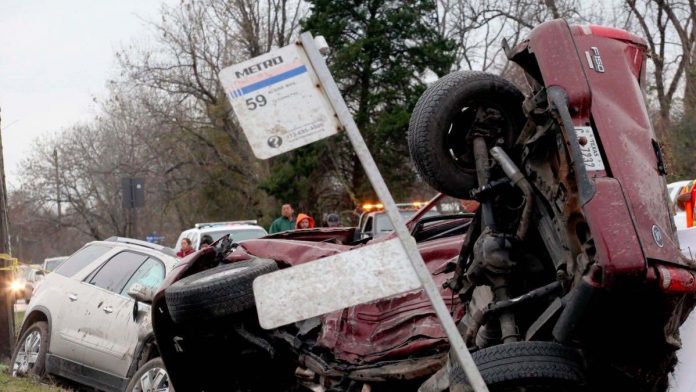 The 14-year-old, who suffered a broken ankle in the crash, was arrested and charged with murder; he’s been booked into a juvenile detention center.