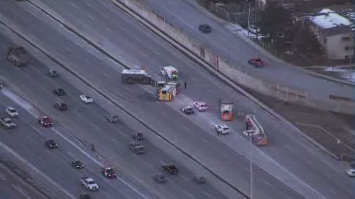 Emergency crews were called to the northbound collector lanes of the highway near Burnhamthorpe Road just after 5 p.m.