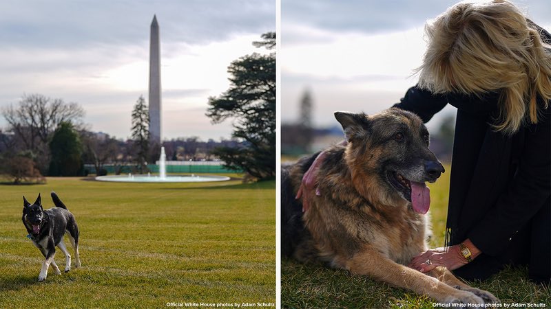 Champ and Major have joined us in the White House! 💕🐾 pic.twitter.com/R035YnavVo