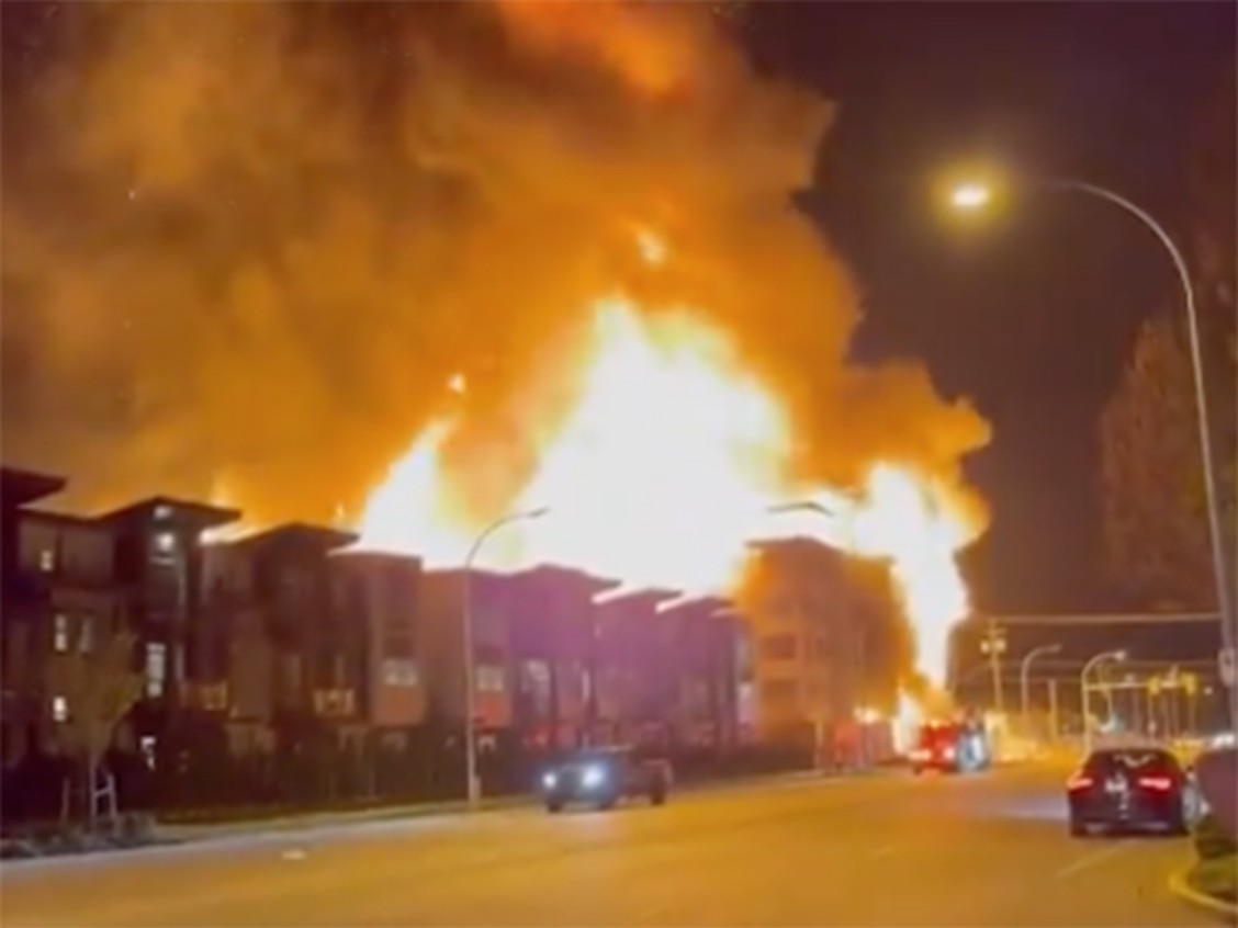 A large fire engulfed a Langley apartment complex on Monday night, cutting out power to the surrounding area and causing the evacuation of nearby residents.