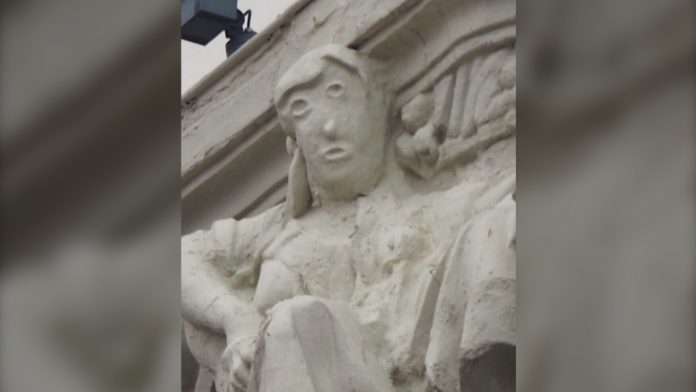 A carved figure in the facade of a Spanish building is going viral on social media after an apparent botched restoration left the figure’s face unrecognizable.