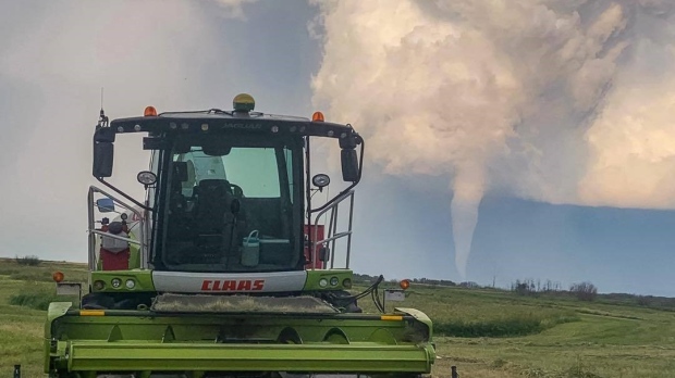 Photos and video show the giant twister touch down a few minutes later on Highway 83 south of Virden. Preliminary findings from an Environment and Climate Change Canada investigation indicate wind speeds reached 190 kilometres per hour.