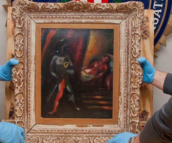 The 1911 Marc Chagall painting, “Othello and Desdemona,” was recovered last year in Maryland, where a man twice tried to sell it to a Washington, D.C. gallery owner. The suspicious gallery owner said he couldn’t sell the piece without proof of ownership, and told the man to contact law enforcement — and he did.