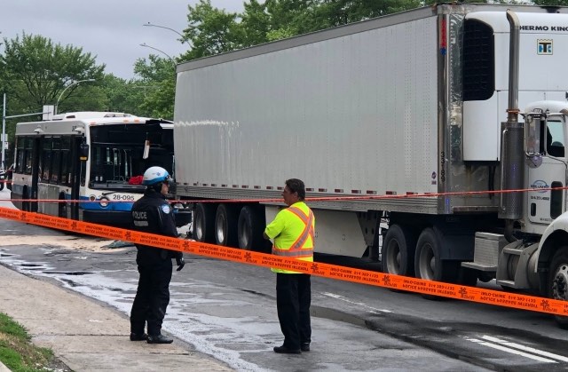 The truck was stopped at a red light on Henri-Bourassa Blvd. when the Société de transport de Montréal bus driver plowed into the back of the 53-foot truck, said Benoît Boisselle of the Montreal police.