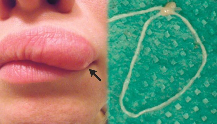 Over five days, a 32-year-old woman in Russia took selfies to document a strange lump on her face that moved from under her left eye to above it and then later to her lip. She finally visited a physician who reported a “superficial moving oblong nodule at the left upper eyelid.” Turns out, she had a particular kind of parasitic worm, Dirofilaria repens, living under her skin. From Live Science: