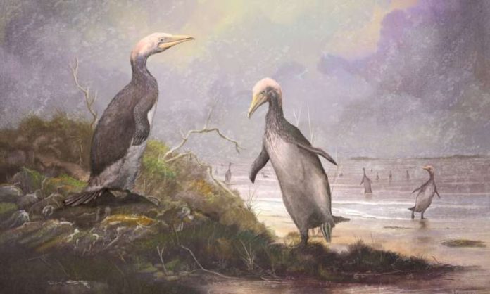 Fossils from New Zealand’s giant penguins, including Waimanu and Sequiwaimanu are currently on display alongside life-sized models of the birds in Canterbury Museum’s exhibition, “Ancient New Zealand: Squawkzilla and the Giants,” extended until 16 August 2020.