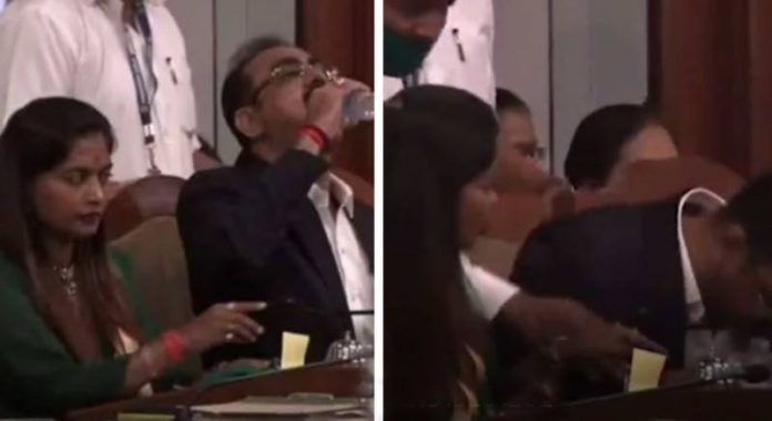 A civic official in India was seen accidentally drinking hand sanitiser instead of water at a public meeting, with cameras capturing the unfortunate moment on film.