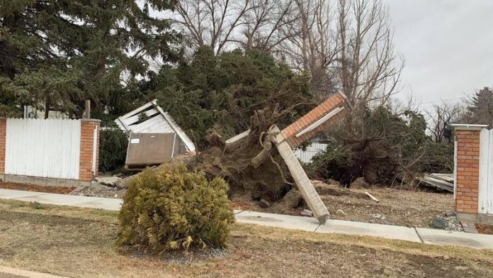 According to Environment Canada, a personal weather station in Taber reported a peak gust of 145 km/h. Damages were reported across the town and surrounding area.