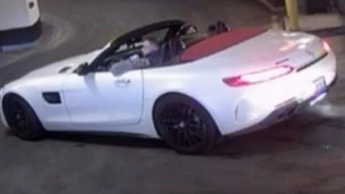 Police said the light-colored convertible sports car would have noticeable damage to its front end. The suspect vehicle was described as “a white, 2019, or newer, Mercedes AMG GT convertible with a red interior and convertible top.”