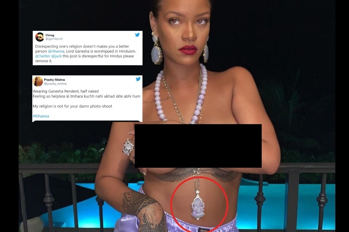 Pop icon Rihanna has been accused of mocking a Hindu god after she was pictured topless with a pendant of Ganesha around her neck, sparking a furore in India.