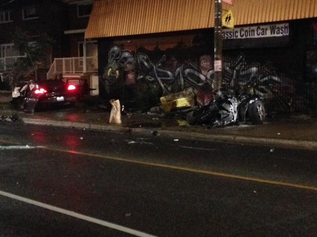 Two teenage boys were taken from the vehicle to Sick Kids Hospital in life-threatening condition while two other teenage occupants of the vehicle suffered less serious injuries.