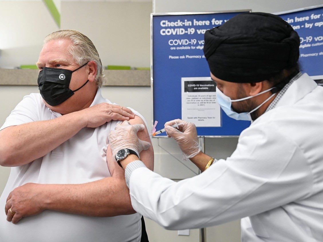 Premier Doug Ford got a first shot of AstraZeneca Friday and urged all eligible Ontarians to get vaccinated at their first opportunity.