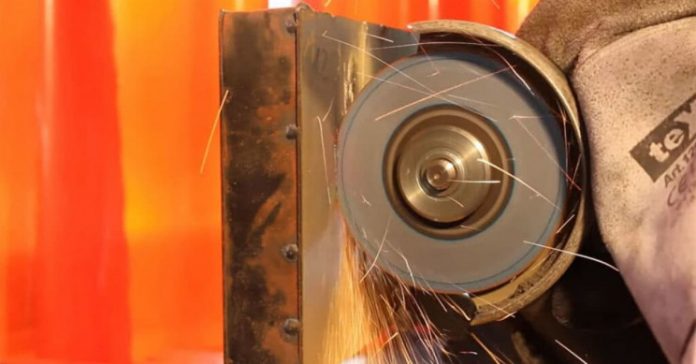 The material is made from a cellular aluminum structure wrapped around ceramic spheres and this has a doubly destructive effect on cutting tools. When cut with an angle grinder or drill, the vibrations created by the ceramic spheres inside the casing blunt the cutting disc or drill bit.