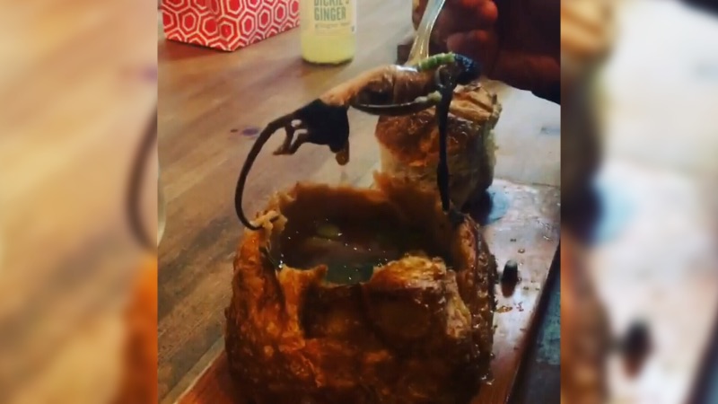 The owner of a chowder restaurant in Vancouver is apologizing after a customer allegedly found a dead rat inside a bowl of soup.