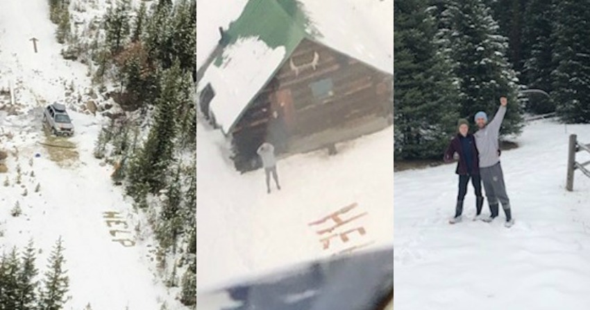 “An outstretched orange tarp, a large arrow and the word ‘HELP’ each etched in the snow within close proximity to the abandoned vehicle, ultimately led to the discovery of the man and woman, who had taken up shelter in a nearby cabin,” O’Donaghey said.