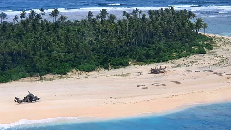 The men were found in good condition, and an Australian military helicopter was able to land on the beach and give them food and water. A Micronesian patrol vessel was due to pick them up.