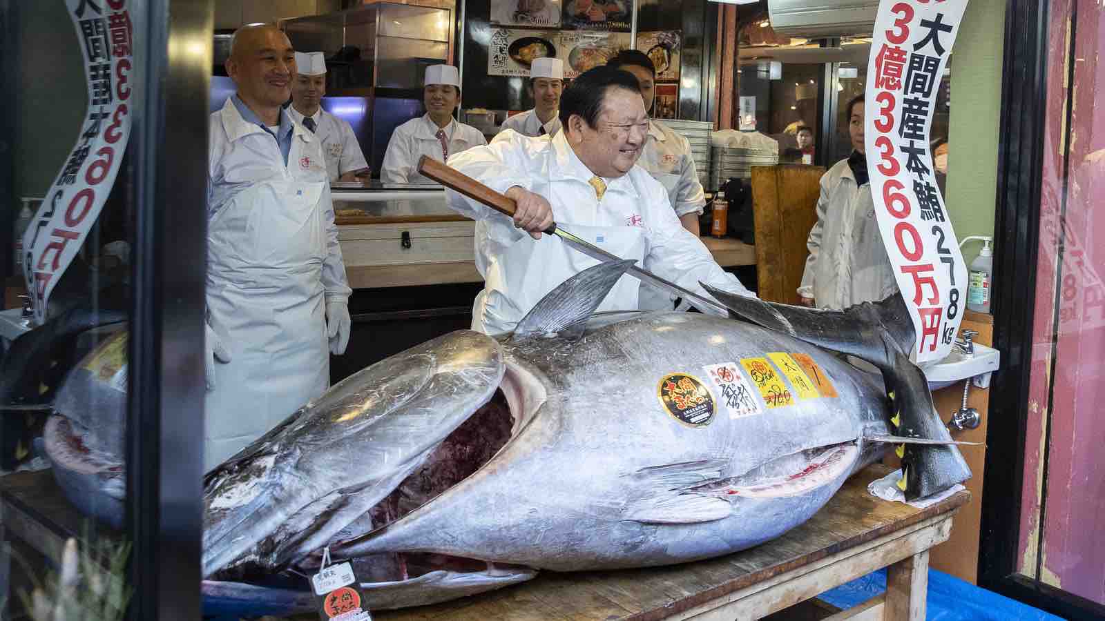 The Kiyomura Corp., which Kimura runs, footed the bill at over $5,000 per pound. The fish usually sells for up to $40 per pound, though the price can fluctuate to more than $200 per pound. The gigantic tuna will translate to more than 12,000 pieces of sushi for the company’s Sushi Zanmai chain.
