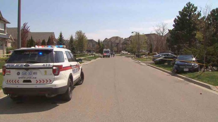 Police say a car went off the road on Athabasca Drive, just off Dufferin Street north of Teston Road, and struck three people.