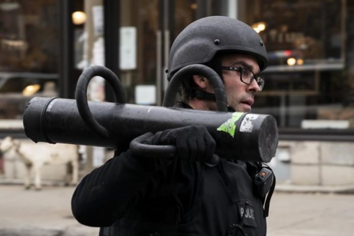 More than a dozen heavily armed members of a police tactical squad entered the Ubisoft building around 3 p.m.