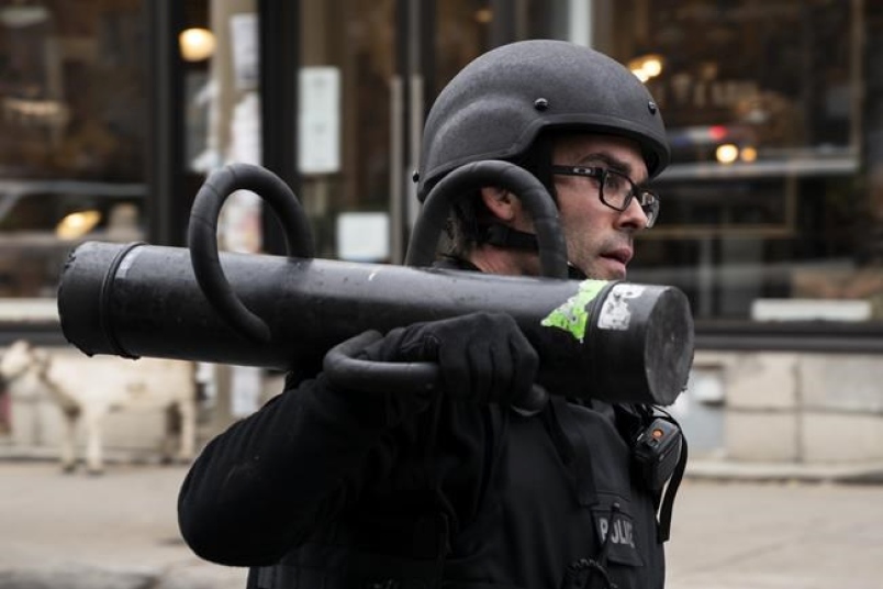 Large numbers of officers responded to the call in a neighbourhood north of downtown around the offices of video-game maker Ubisoft.