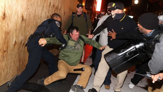 At least 20 people were arrested as pro-Trump demonstrators and counterprotesters gathered in the nation’s capital on Saturday.