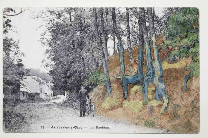 A 94-year-old French woman had lent Van der Veen her collection historical postcards for his research, but the significance of the image, taken around 1905, didn’t initially register. Then, one day during lockdown, he realized that there was something familiar at about the gnarled tree roots and vegetation on the side of the path. Could this be what Van Gogh had been looking at the very last time he took paintbrush to canvas?